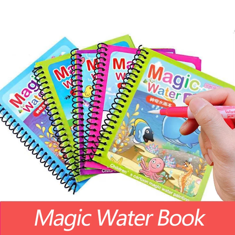 Name: Libro de colorear reutilizable con 6 tipos de juguetes para niños, libro de dibujo de agua mágica, sensorial, Educación Temprana, juguetes para niños, regalo de cumpleaños